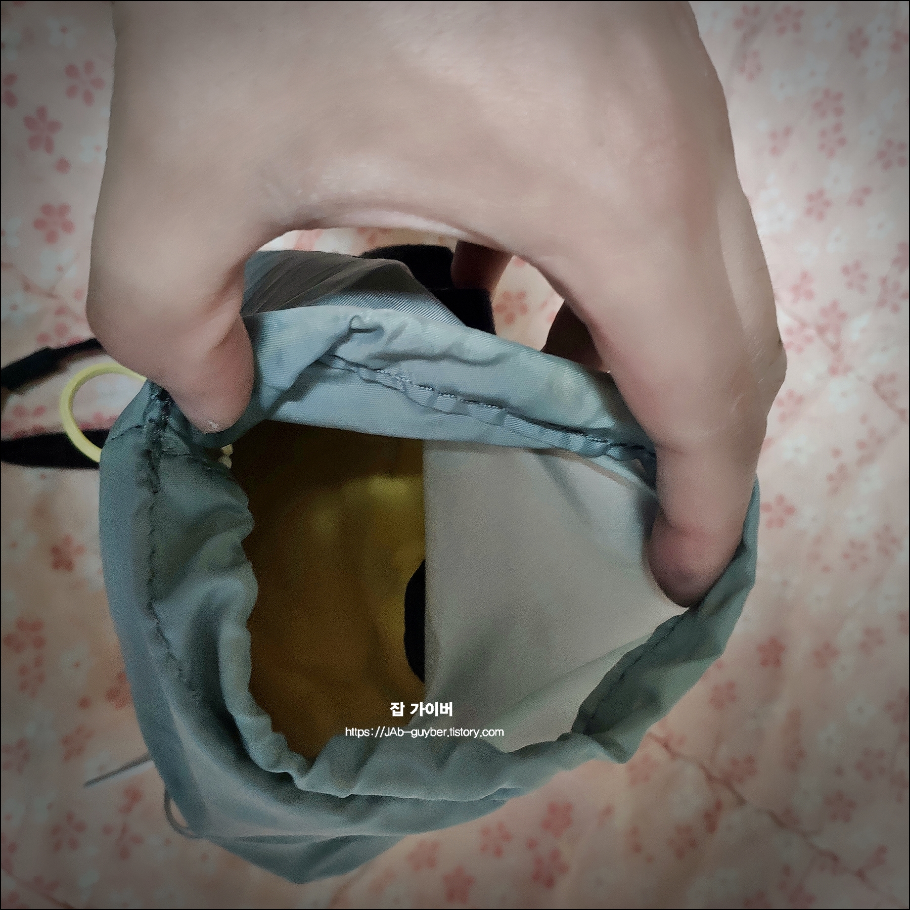 간단한 쓰레기도 이렇게 잠깐 담아서 가지고 다니기에도 용이하고 내용물을 넣고 빠짐을 방지하기 위해서는 포함된 노란색 끈을 잡아 댕기면 되는 방식으로 매우 간편합니다.