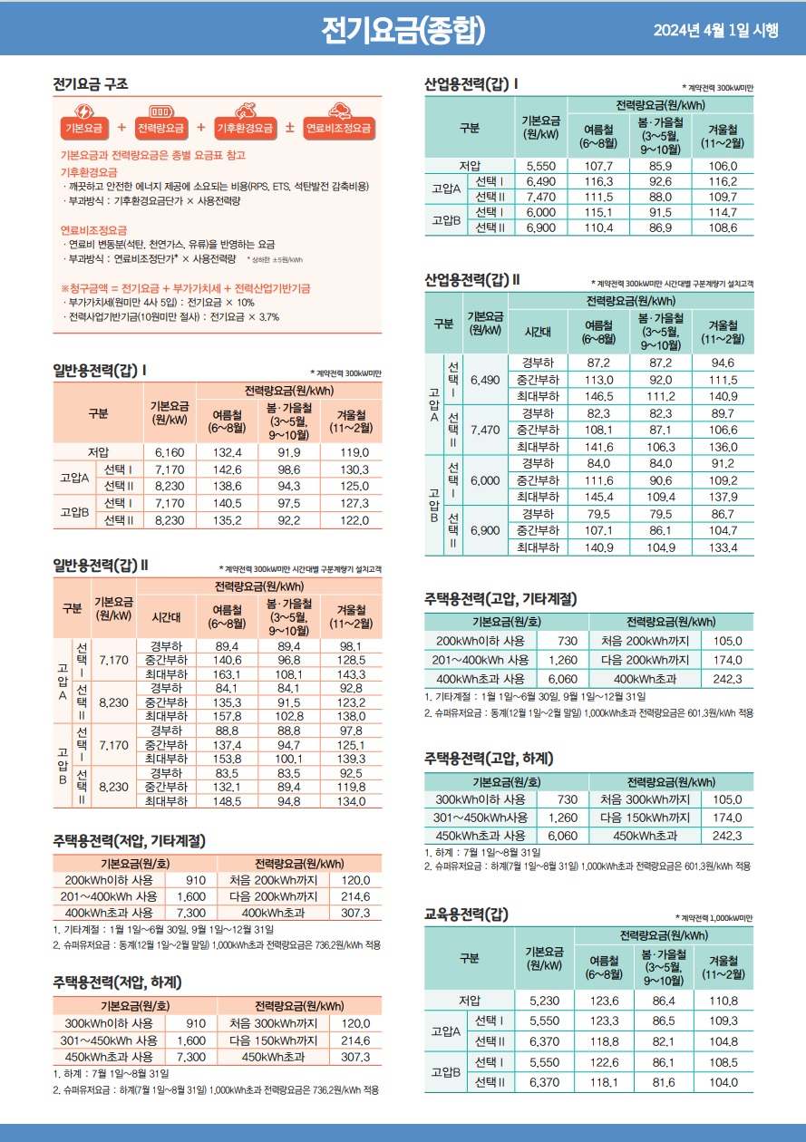 - 저압: 초과 사용량이 많을수록 높은 요율로 부과