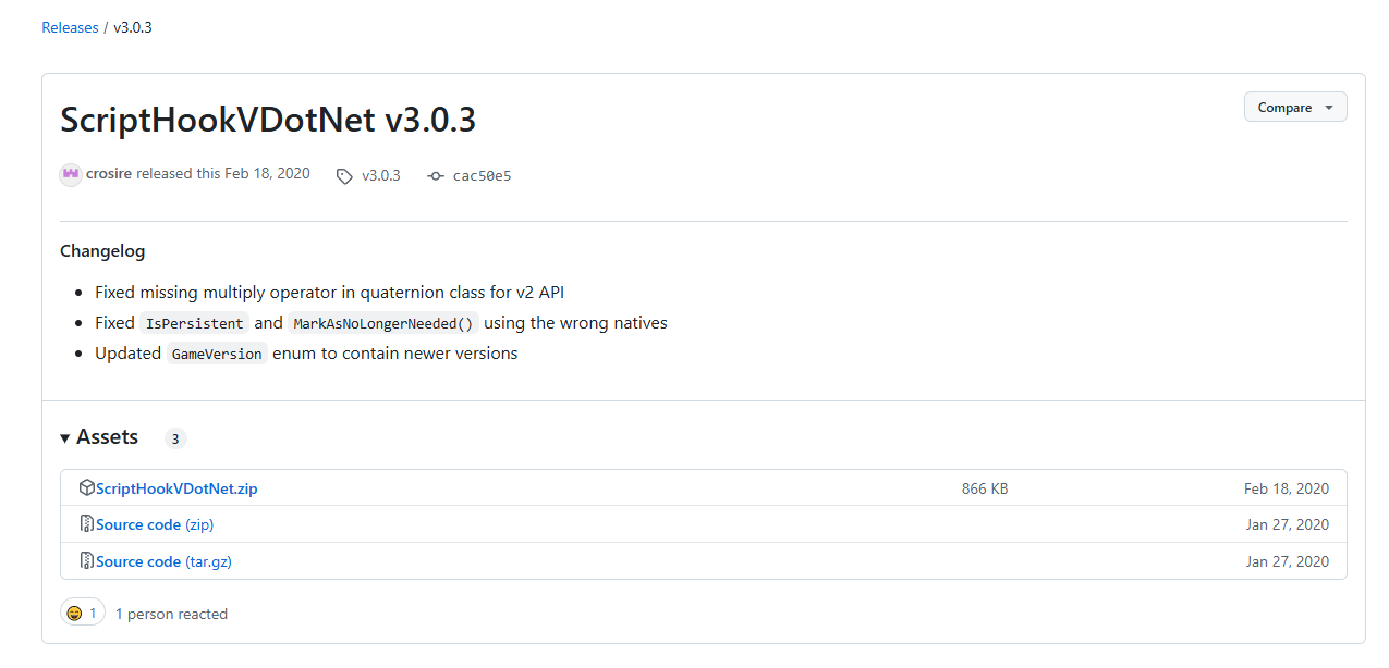- ScriptHookVDotNet 다운로드 링크 접속.