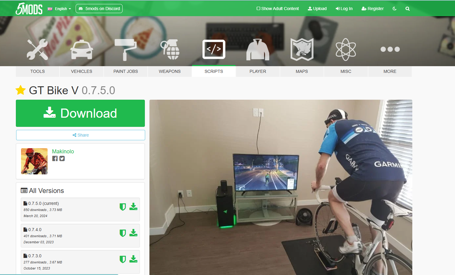 - GTA5에서 자전거 라이딩 모드를 추가.