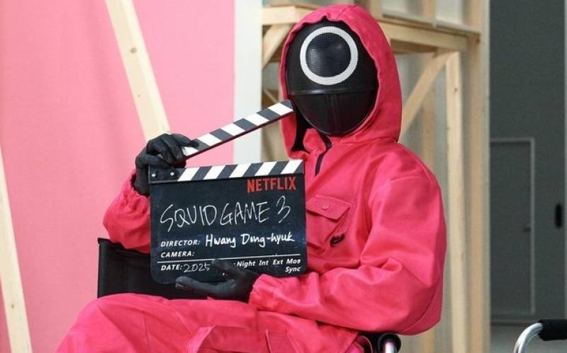 이 캐릭터는 검은 가면에 'O' 글자가 새겨진 붉은 후드와 붉은 바지를 착용하고, 카메라를 향해 응시하며 슬레이트를 들고 있는 모습이 포착되었습니다. 슬레이트에는 'Squid Game 3'라는 문구가 선명하게 적혀 있어, 이 사진이 시즌 3의 촬영 현장임을 명확하게 표시합니다. 이는 '오징어 게임 3' 개봉일이 다가오고 있음을 팬들에게 강력하게 시사하는 동시에, 시리즈에 대한 관심을 더욱 증폭시키는 요소로 작용했습니다.