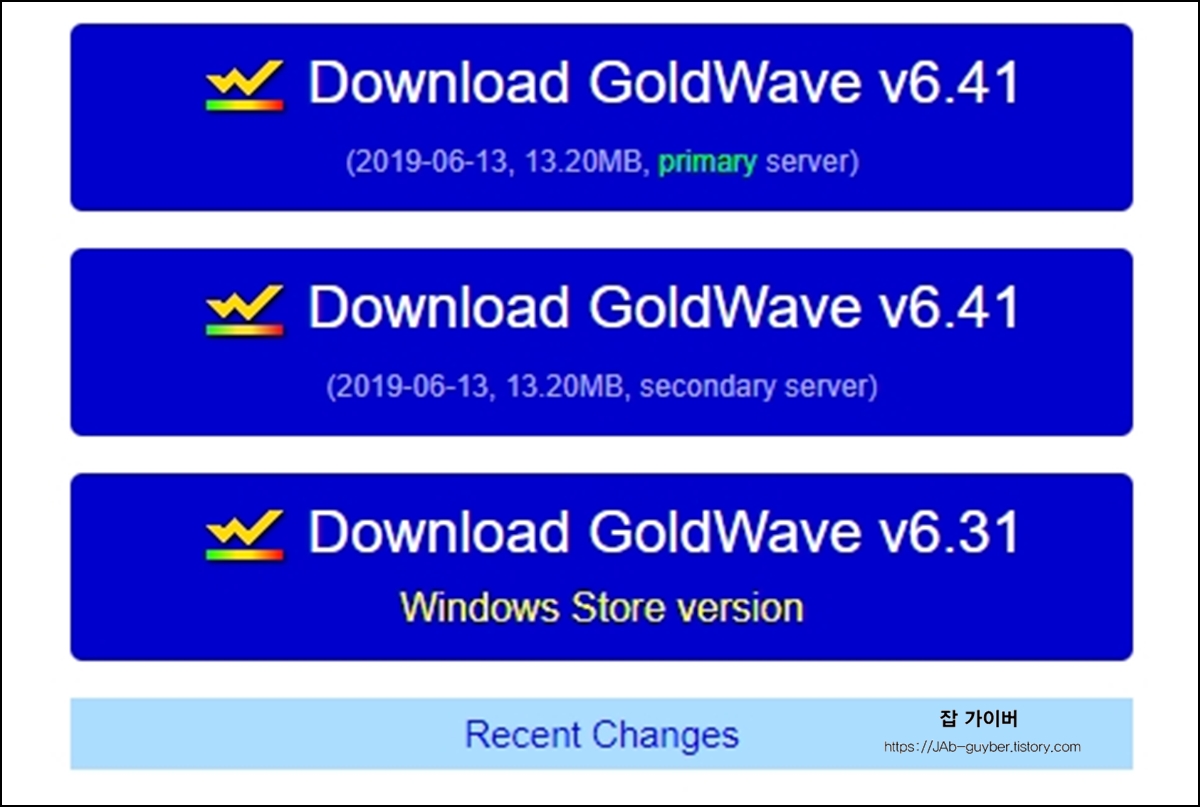 골드웨이브 공식 홈페이지 : https://www.goldwave.com/