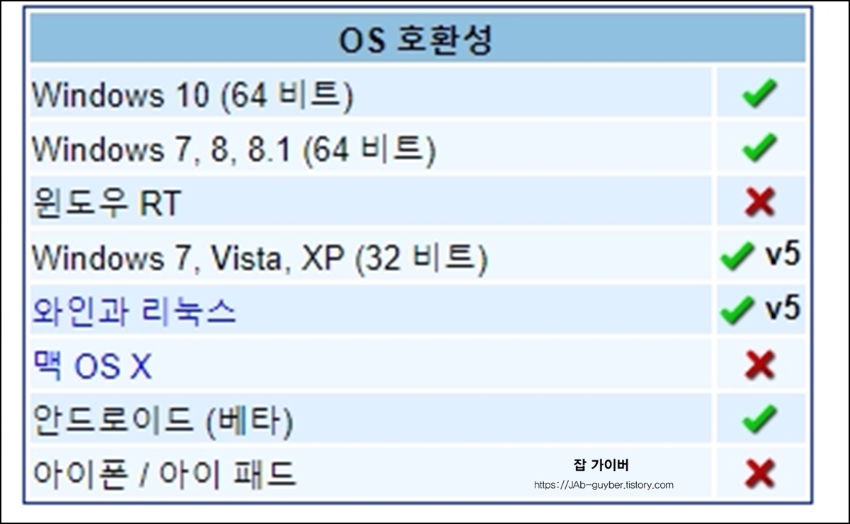 | Vista / XP / 32bit | 비추천 | 현실적으로 제약이 큼 |
