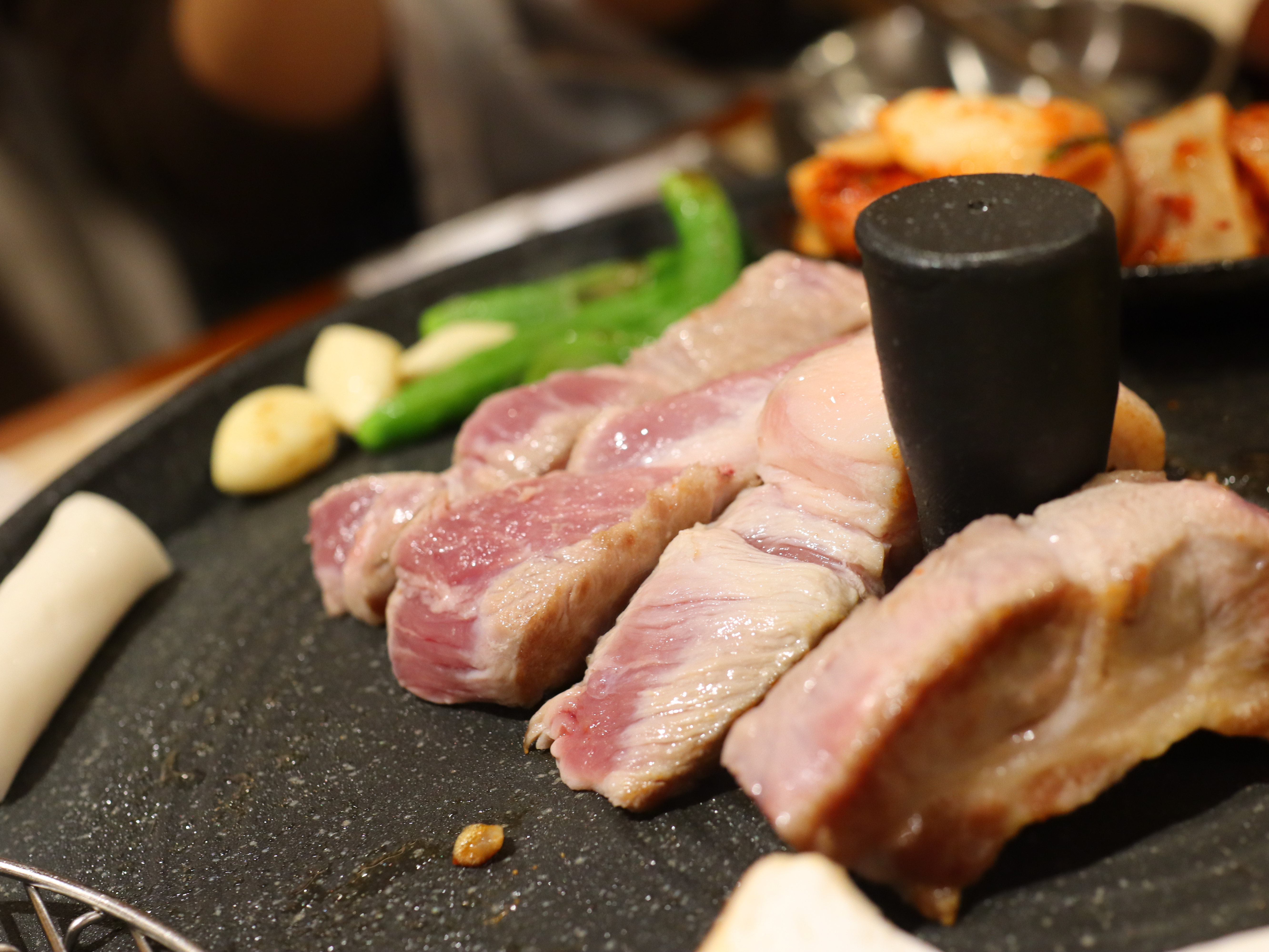 '프리미엄 1+ 한돈 암퇘지'를 사용하는 이 고기집은 고기의 질에서도 타협하지 않으며, 곁들여진 김치나 소금 등 모든 재료가 국내산이라는 점에서 신뢰가 갔습니다.