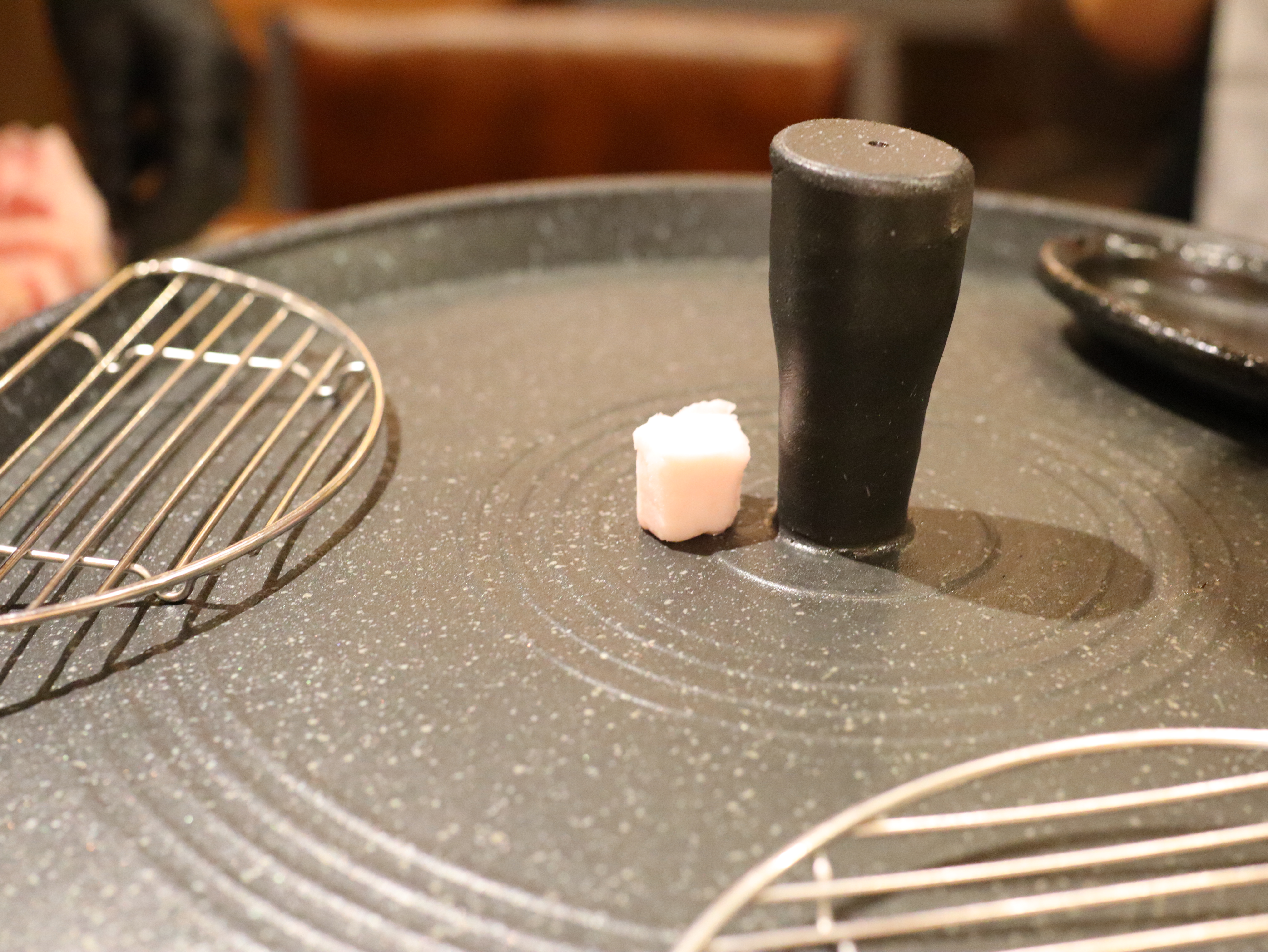 보름솥뚜껑구이 오목교점에 들어서자마자 눈에 띄는 것은 중앙에 자리한 큰 솥뚜껑 불판이었습니다.