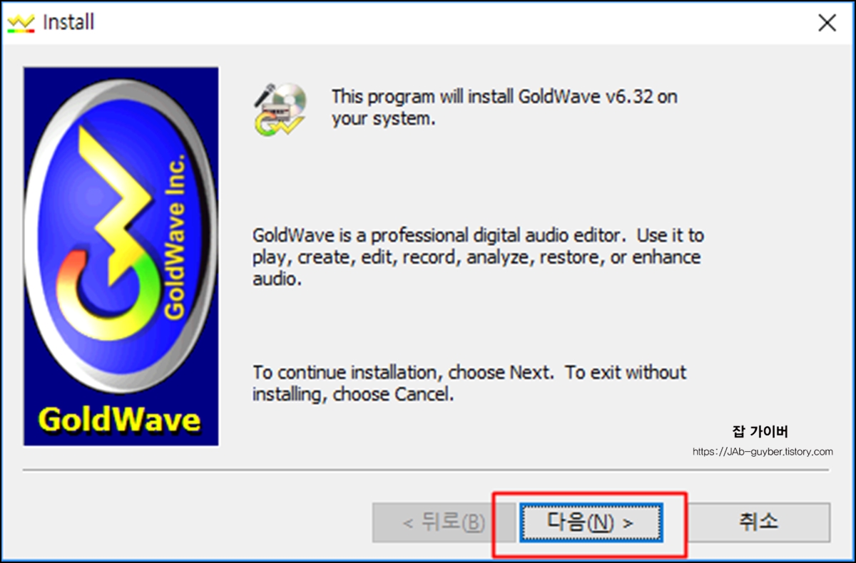 골드웨이브 설치 화면 그대로 따라가며 정리