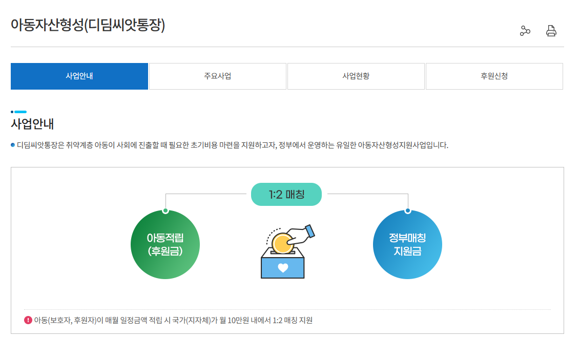 디딤씨앗통장은 취약계층 아동의 사회진출 시 필요한 초기비용을 마련하기 위해 정부에서 운영하는 유일한 아동 자산형성 지원 사업입니다.