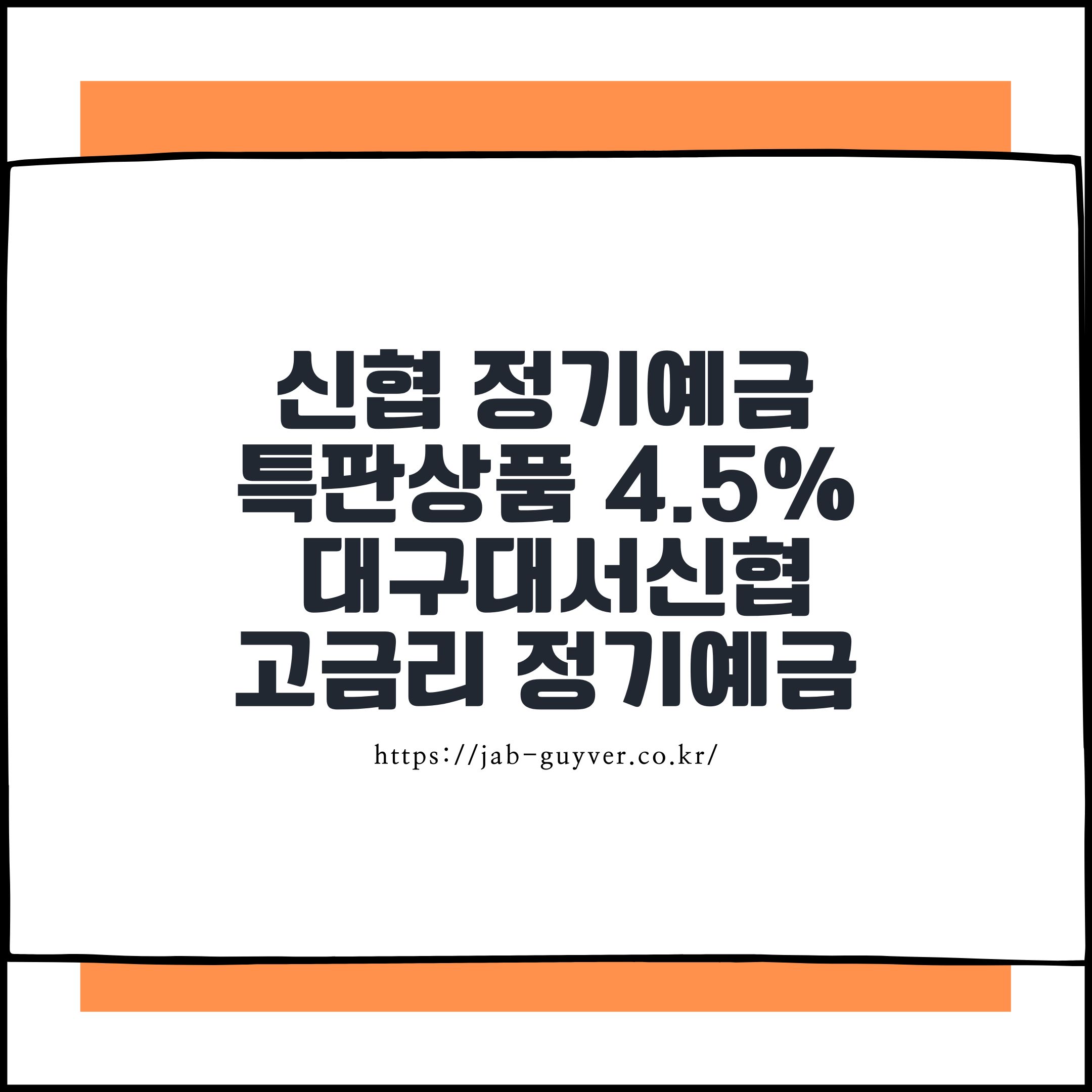 2025년 현재, 기준금리 인상 기조 속에서 안정적인 이자 수익을 추구하는 투자자들 사이에 ‘신협 고금리 정기예금 특판’에 대한 관심이 다시 높아지고 있습니다. 특히 최근 대구대서신협이 출시한 연 4.5% 금리의 정기예금 특판 상품은 한정 수량으로 제공되며, 짧은 기간 내에 마감될 가능성이 높아 주목받고 있습니다.
