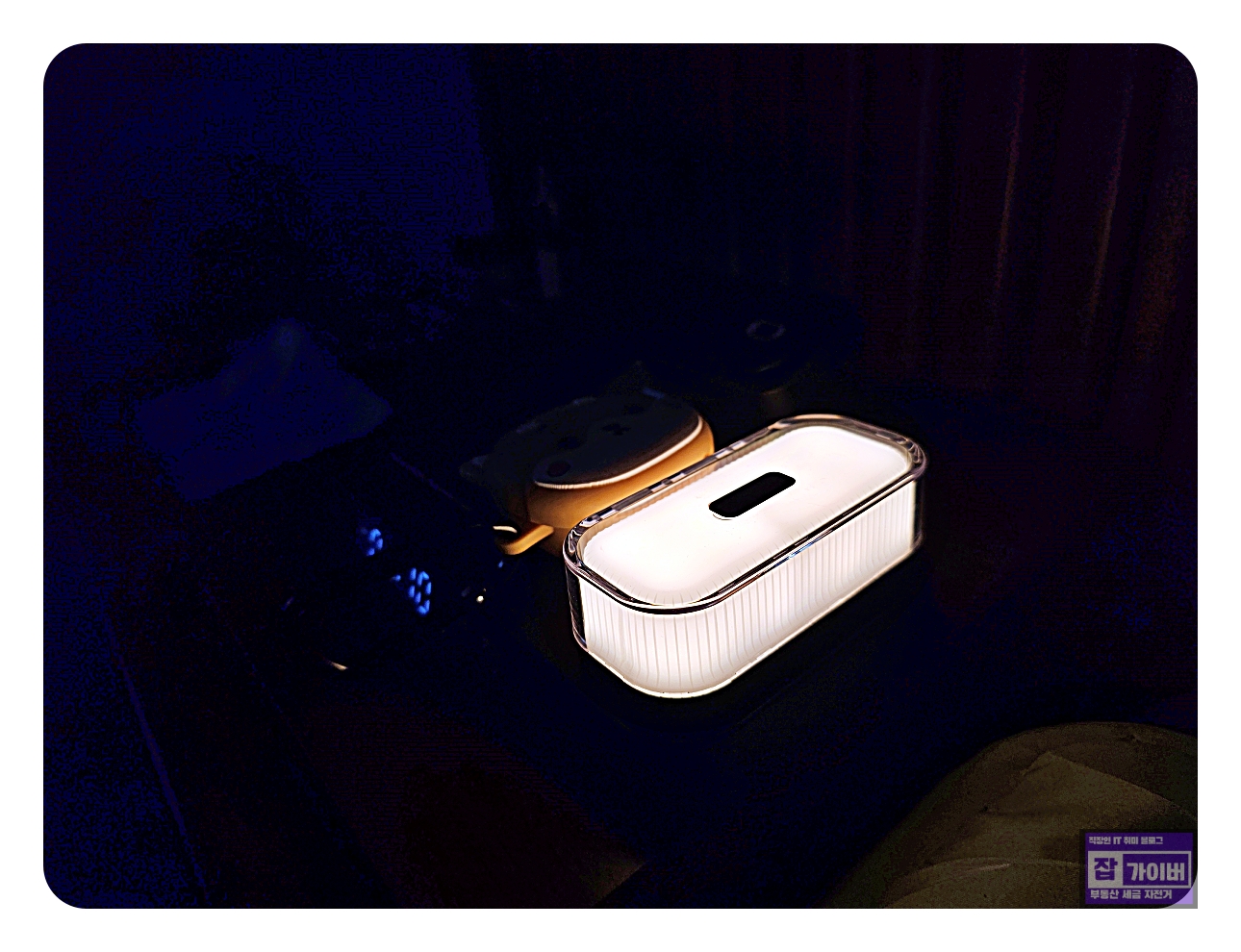 우선 타제품과 차별점인이 제품의 숨은 보석 같은 기능은 바로 조명입니다. 독립적으로 사용할 수 있는 LED 조명이 포함되어 있는데, 마그네틱으로 되어 있어서 충전기 본체에서 떼어낼 수도 있었습니다. 침대 옆 조명으로 사용하기에도, 책상 위 포인트 조명으로 사용하기에도 딱 좋더군요.