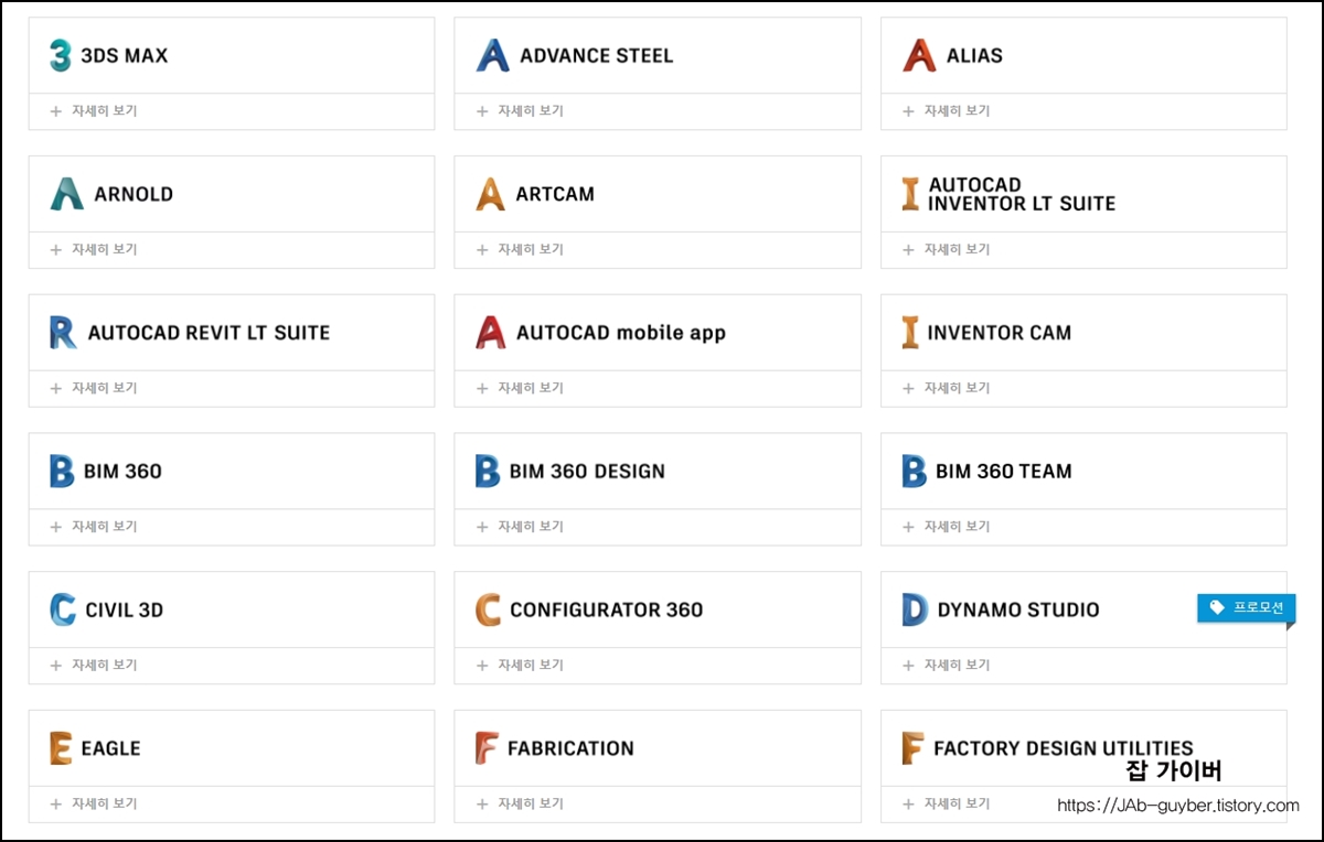참고로 가입을하게되면 무료로 오토캐드외에도 다양한 오토데스크 제품군을 다운로드할 수 있습니다.