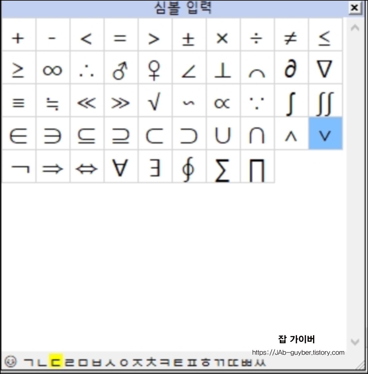 | 기호 | 설명 | 사용 글꼴 | 입력 방법 / 팁 |