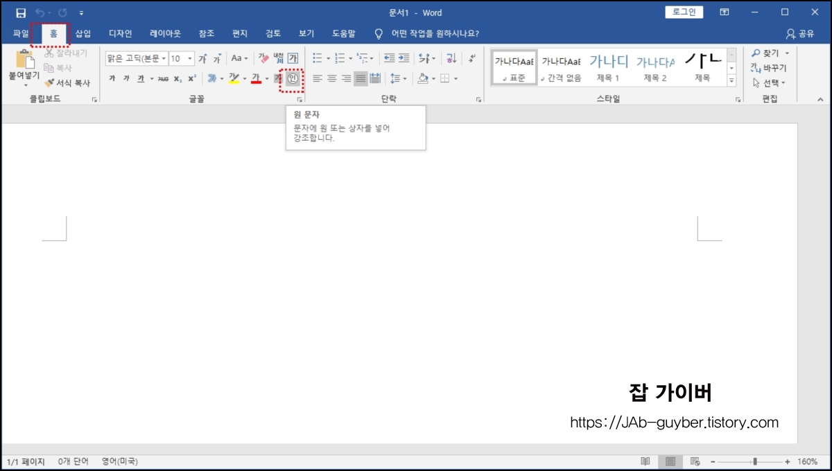 특수 기호를 뒤지지 않고 바로 만들 수 있는 장점이 있으며 홈 탭 -> 글꼴 그룹에 원 문자 리본 메뉴가 있습니다.