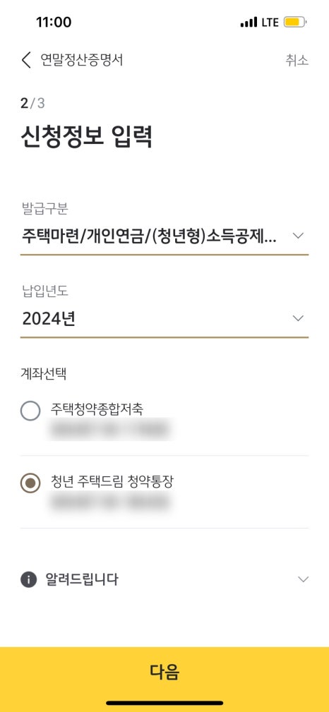 핸드폰에서 KB스타뱅킹 앱을 실행한 뒤, 전체 메뉴 > 금융편의 > 증명서 발급으로 들어가면 연말정산증명서 항목이 보입니다. 여기에서 주택청약종합저축 계좌를 선택하고 연도를 맞춰주면 바로 PDF, 이메일, 팩스 등 원하는 방식으로 발급이 가능합니다.