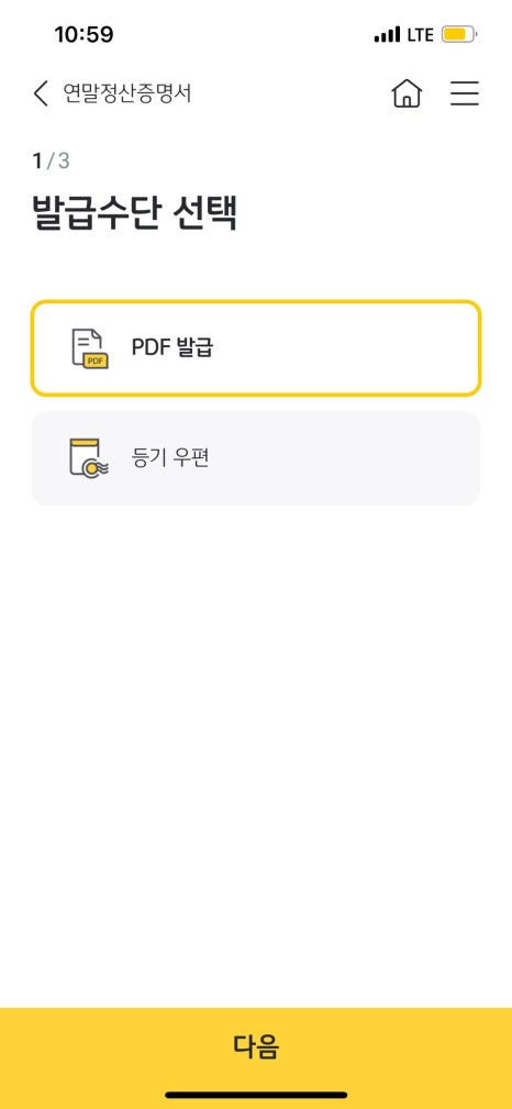 핸드폰에서 KB스타뱅킹 앱을 실행한 뒤, 전체 메뉴 > 금융편의 > 증명서 발급으로 들어가면 연말정산증명서 항목이 보입니다. 여기에서 주택청약종합저축 계좌를 선택하고 연도를 맞춰주면 바로 PDF, 이메일, 팩스 등 원하는 방식으로 발급이 가능합니다.