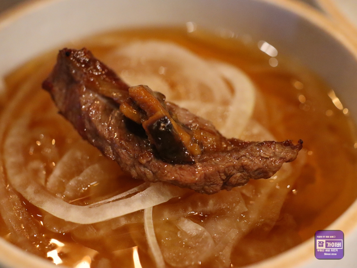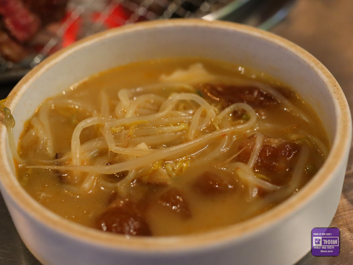 양심소의 또 다른 장점은 서비스였습니다. 친절한 직원분들이 고rl를 맛있게 먹을 수 있는 방법을 안내해 주었고, 필요한 것들을 즉시 제공해 주어 매우 편안하게 식사를 즐길 수 있었습니다. 또한, 서비스로 제공된 스지탕은 깊고 진한 국물 맛이 일품이었는데, 약간의 칼칼함이 더해져 술안주로도 훌륭했습니다.