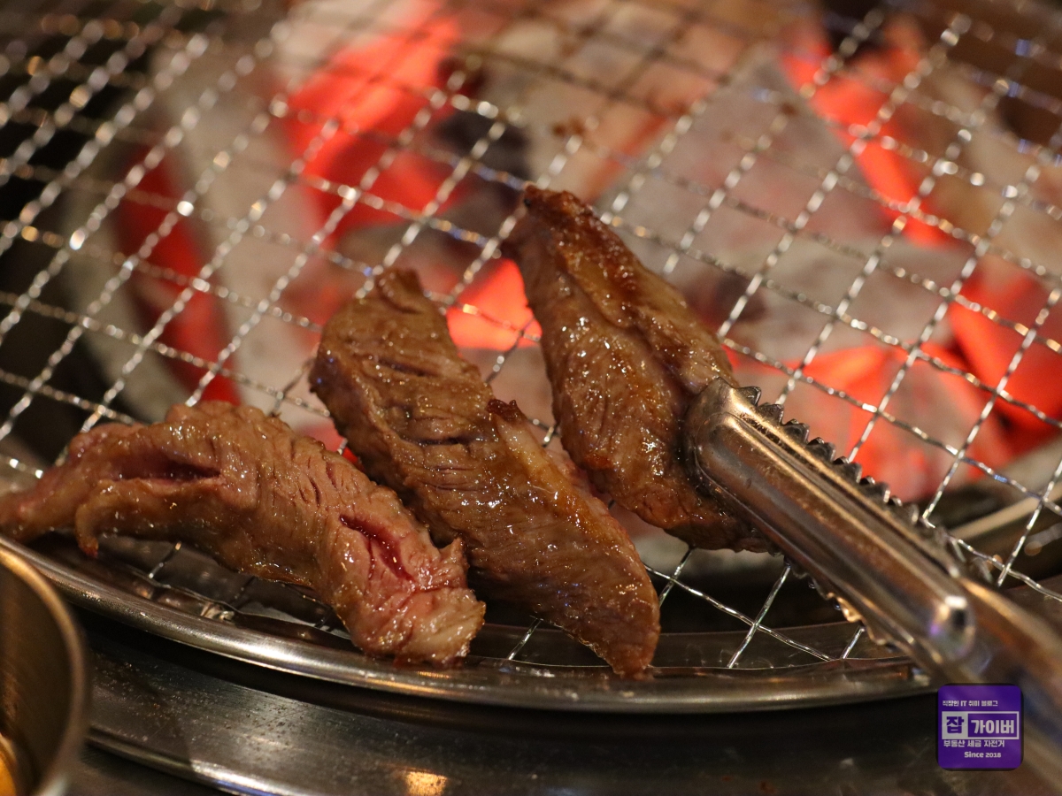 각 부위는 신선도가 남달랐으며, 고기를 굽는 순간부터 육즙이 풍부하게 올라오는 모습을 보며 기대감이 커졌습니다. 첫 번째로 구운 토시살은 겉은 살짝 바삭하면서도 속은 촉촉하게 익어, 한 입 베어 물었을 때 고소한 풍미가 입안 가득 퍼졌습니다. 육즙이 터져 나오는 순간의 감칠맛은 그야말로 일품이었습니다.