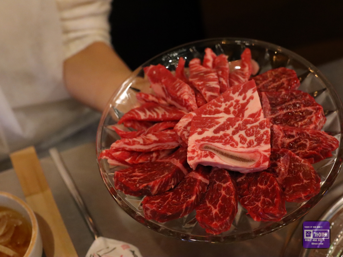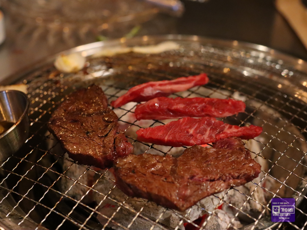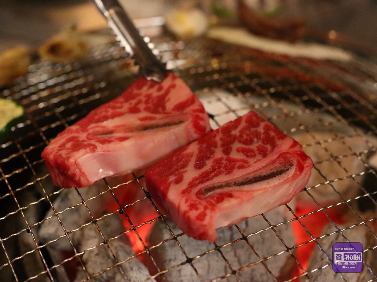 갈비살과 뼈갈비살 역시 마블링이 적당히 분포되어 있어 씹을 때마다 부드러운 식감이 느껴졌습니다.