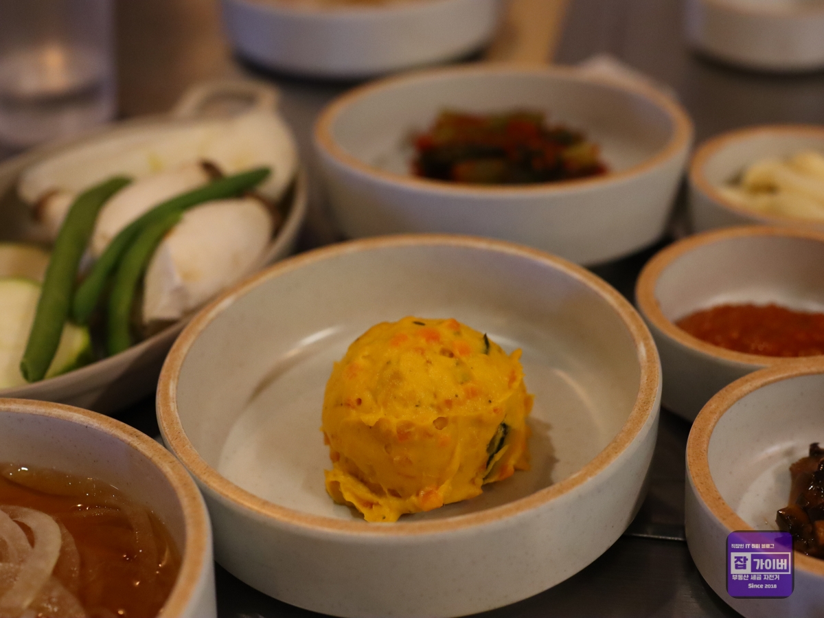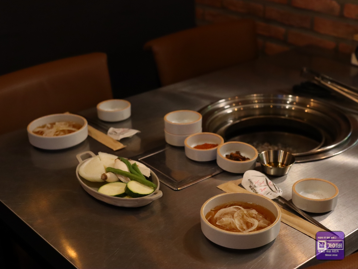 특히, 갈비살의 쫄깃한 식감은 씹을수록 고소한 맛이 더해져 어떤 소스와 곁들여도 완벽한 조화를 이루었습니다. 양심소에서는 고기와 함께 먹을 수 있는 다양한 밑반찬이 제공되었는데, 부추무침, 단호박무스, 명이나물 장아찌 등이 고기의 풍미를 더욱 돋워주었습니다.