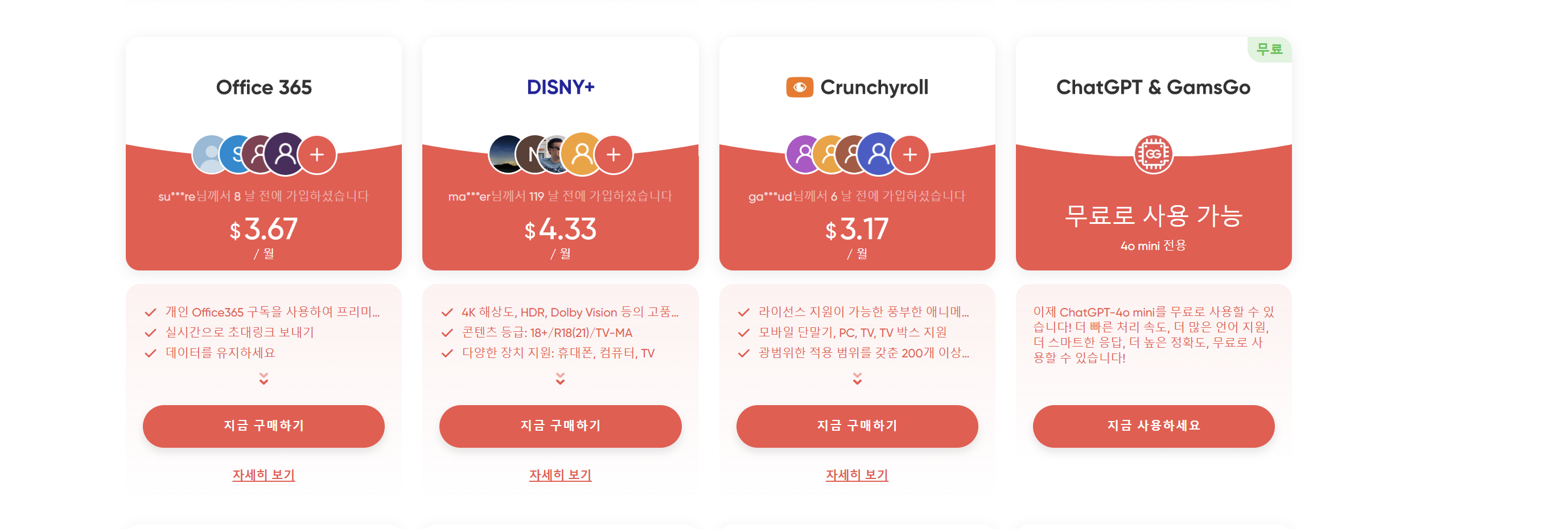 Microsoft 365 Family 플랜처럼 여러 명이 함께 사용하는 구조를 활용해 합법적인 공유 기반 서비스를 운영하고 있기 때문입니다. 덕분에 사용자 입장에서는 정가보다 훨씬 저렴한 비용으로 동일한 기능을 이용할 수 있습니다.