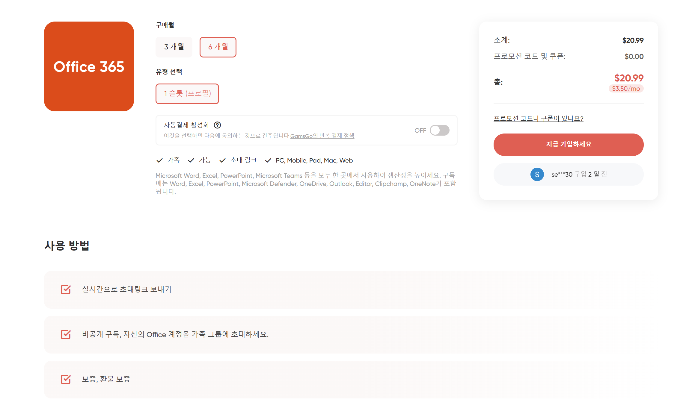 Microsoft 365 Family 플랜처럼 여러 명이 함께 사용하는 구조를 활용해 합법적인 공유 기반 서비스를 운영하고 있기 때문입니다. 덕분에 사용자 입장에서는 정가보다 훨씬 저렴한 비용으로 동일한 기능을 이용할 수 있습니다.