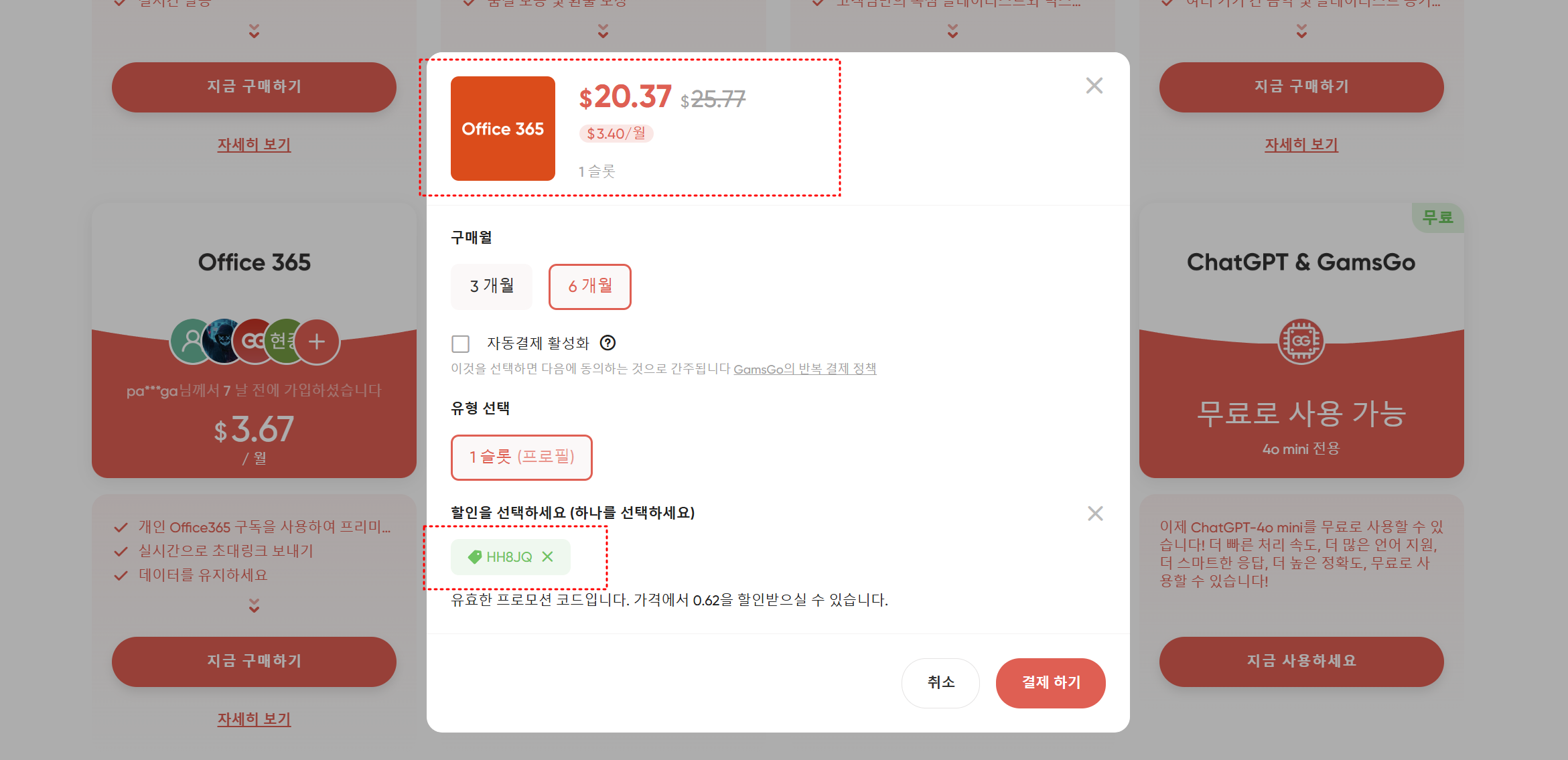 Microsoft의 공식 구독료와 비교하면 절반 이하의 가격에 Word, Excel, PowerPoint, Outlook 등 모든 핵심 기능을 이용할 수 있습니다. 특히, 겜스고를 통해 가입할 때 추천인 코드 "HH8JQ"를 입력하면 추가 할인 혜택까지 받을 수 있어 훨씬 경제적인 선택이 됩니다.