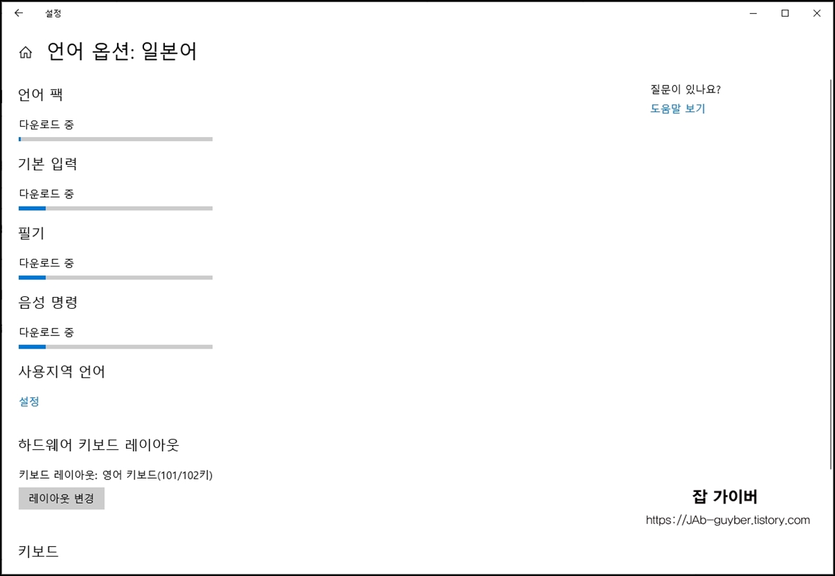 윈도우10 한글 일본어 중국어 영어 언어 폰트설치