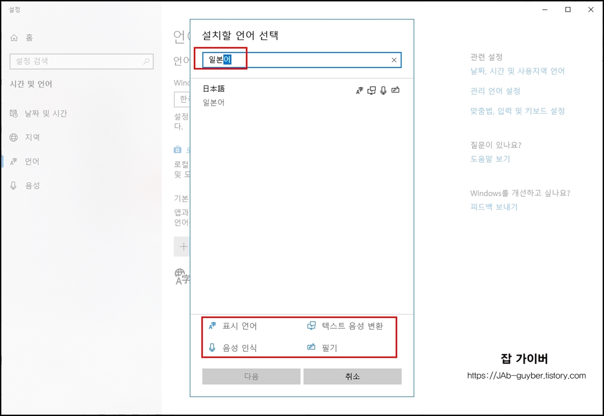- 언어 추가 버튼을 클릭하고 추가하고자 하는 언어(예: 일본어, 영어 등)를 검색하여 설치합니다.