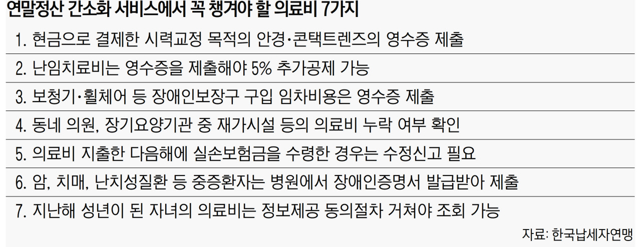 - 연말정산 간소화 서비스에 누락된 항목은 별도로 회사에 신고해야 합니다.