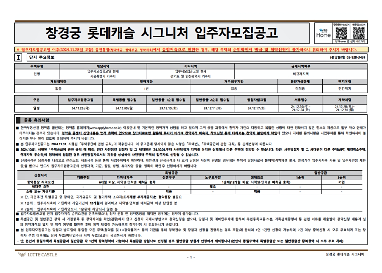 1. ‘창경궁 롯데캐슬 시그니처’ 무순위 청약 개요