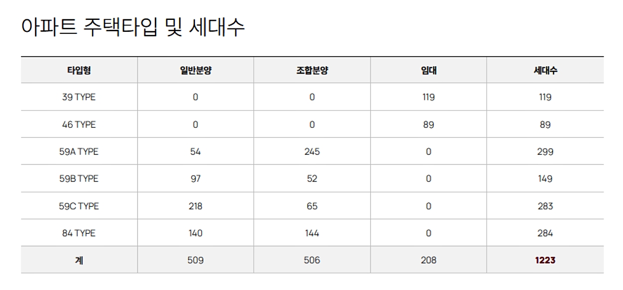 - 59㎡(A, B 타입): 10억 중반~10억 후반
