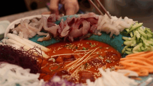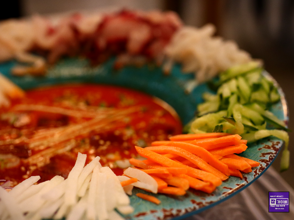 물회는 진한 육수와 다양한 재료가 조화를 이루어 풍부한 맛을 내었고, 사리와 함께 비벼 먹으니 더욱 맛이 살아났습니다.