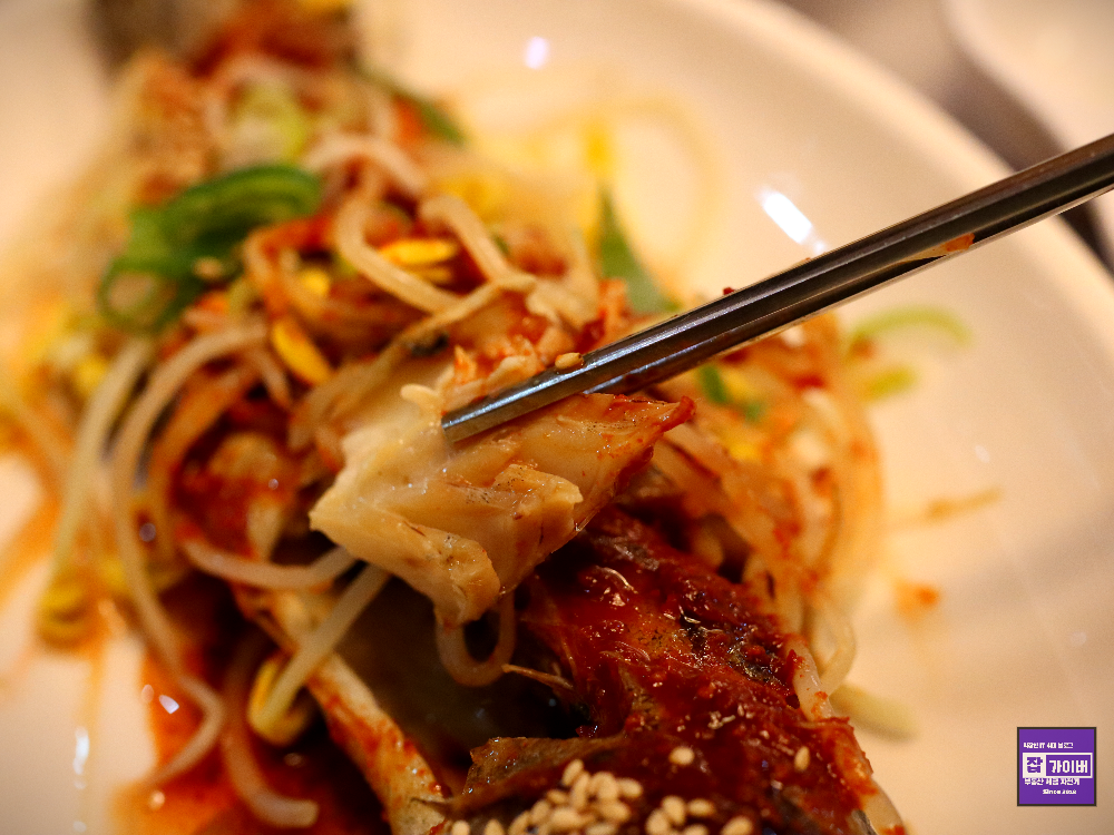 가게에 들어서자마자 기본 반찬들이 푸짐하게 차려졌고, 그 중에서도 특히 코다리찜이 정말 맛있었어요. 살짝 매콤하면서 살코기가 부드럽고 먹기 좋은 크기로 잘 되어 있어서 입맛을 돋워주었죠.