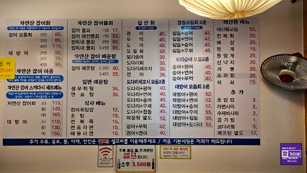 게다가 셀프바가 마련되어 있어 부족한 반찬들을 자유롭게 추가할 수 있는 점도 좋았어요. 기본 반찬의 퀄리티가 이렇게 좋은 곳은 드물죠. 더욱이 회를 기다리면서 음식의 품질을 체감할 수 있어서 기대감이 커졌어요.