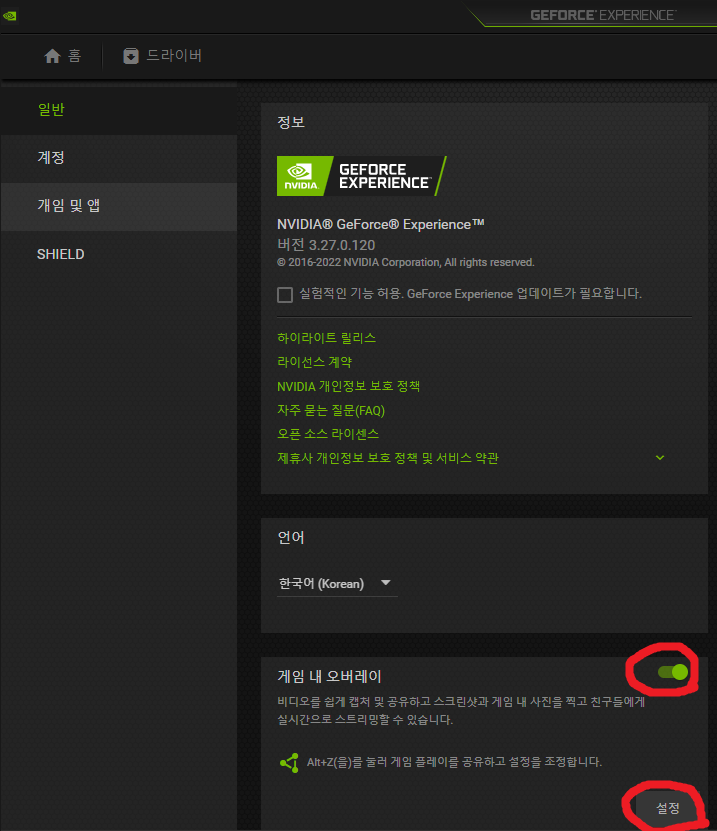 ✅ GeForce Experience 설정 → 게임 내 오버레이 비활성화