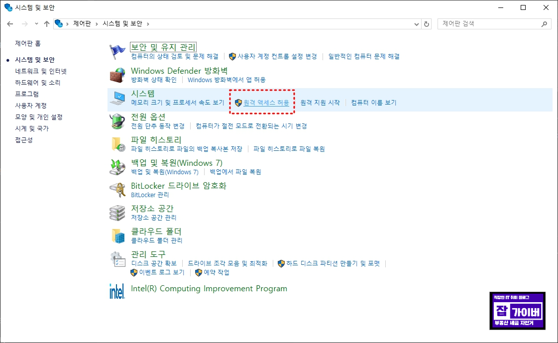 - 시스템 및 보안 → 시스템을 클릭합니다.