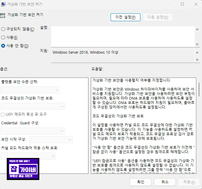 추가로 컴퓨터 구성>관리 템플릿>시스템>Device Guard>가상화 기반 보안 켜기 => 사용안함으로 체크 적용 후 원격 데스크톱 접속을 다시 시도하세요.