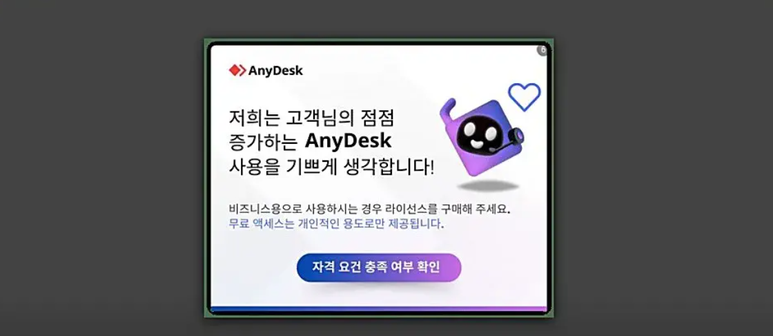 먼저 애니데스크 무료버전을 사용하면서 팝업창이 뜨는 원인과 시간제한 없이 사용하는 방법에 대해서 후기를 남겨봅니다.