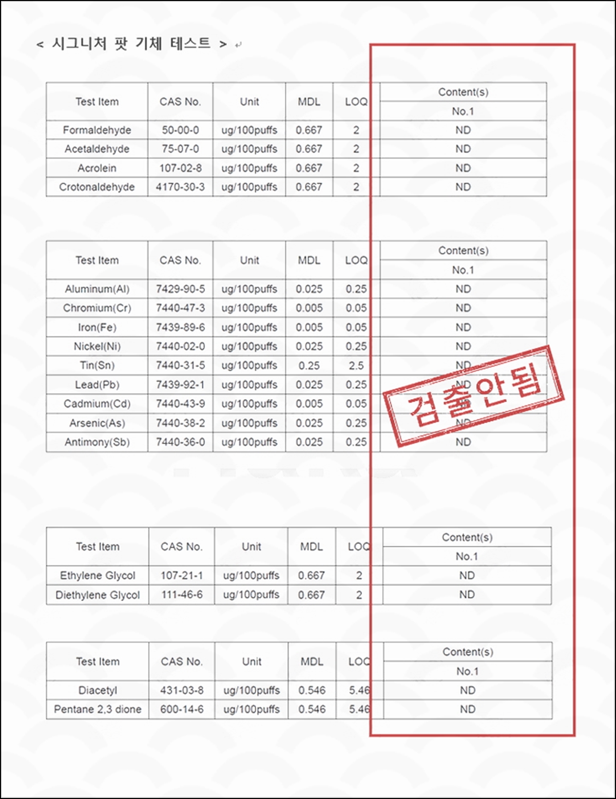 액상형 전자담배 기기의 설계가 안전하지 않다면, 사용자는 유해 물질을 흡입하게 될 위험이 있습니다.