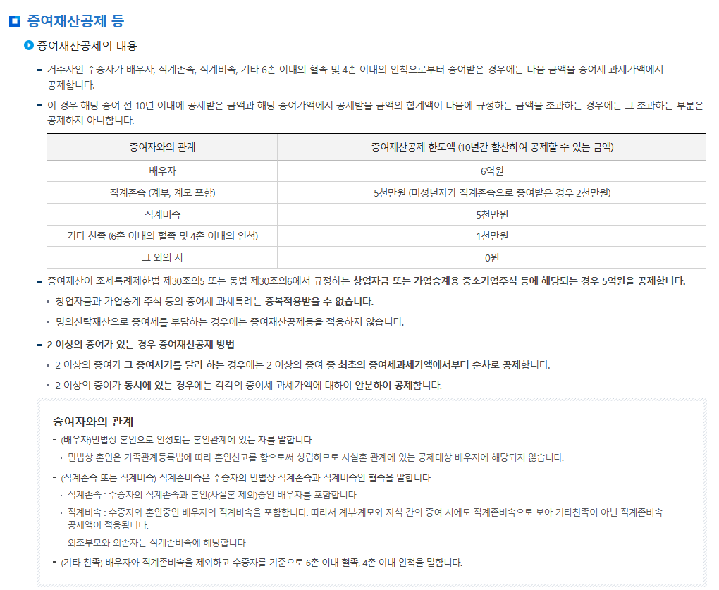 2. 2025년 기준 증여세 공제 한도는 얼마인가요?