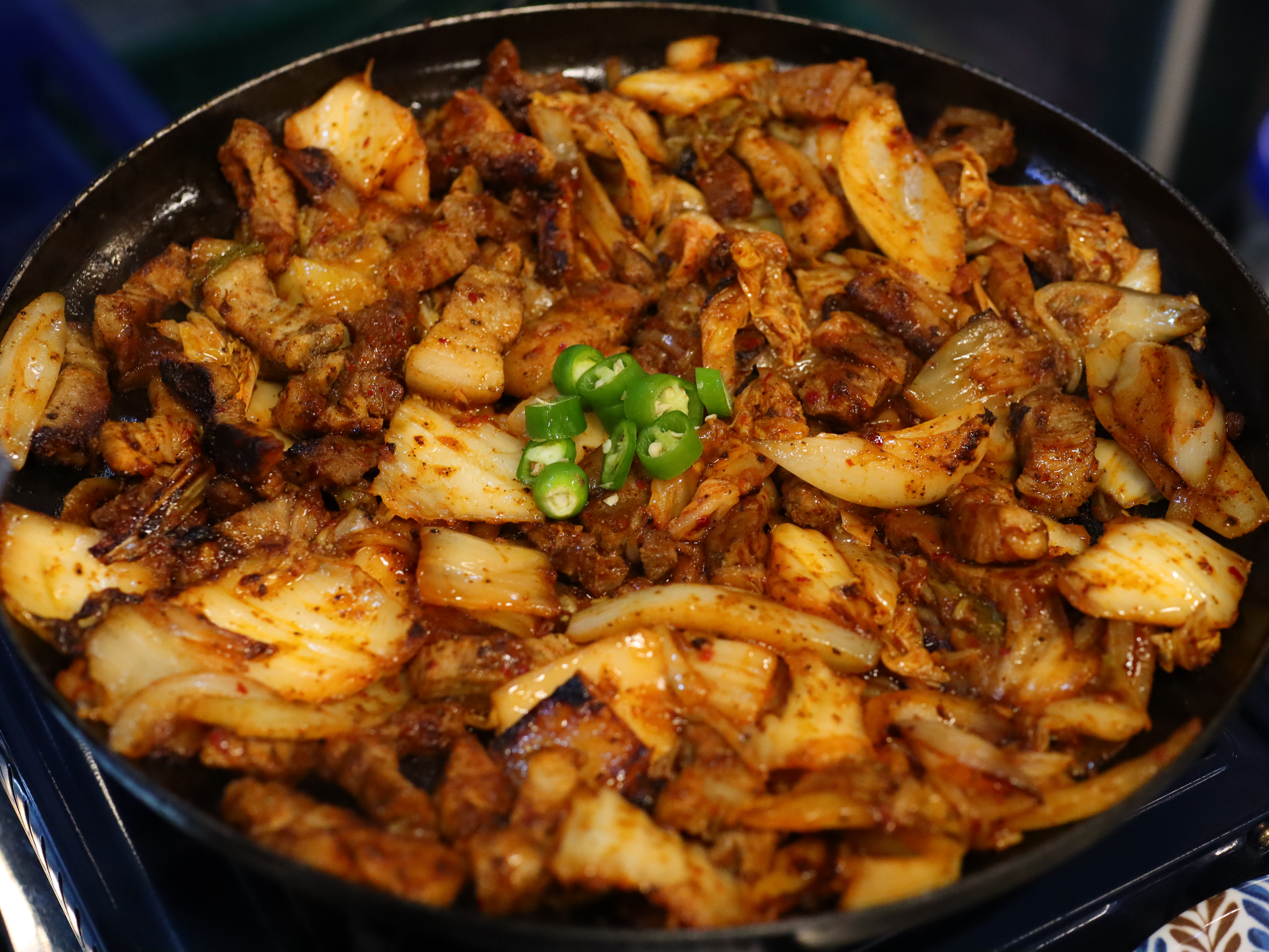 김치와 양파가 잘 어우러져 감칠맛이 폭발! 고기도 도톰하고 부드러워 씹을 때마다 육즙이 살아 있었어요. 와이프는 한입 먹자마자 "이건 밥도둑이야!"라고 감탄하며 밥을 추가하려고 했다니까요.