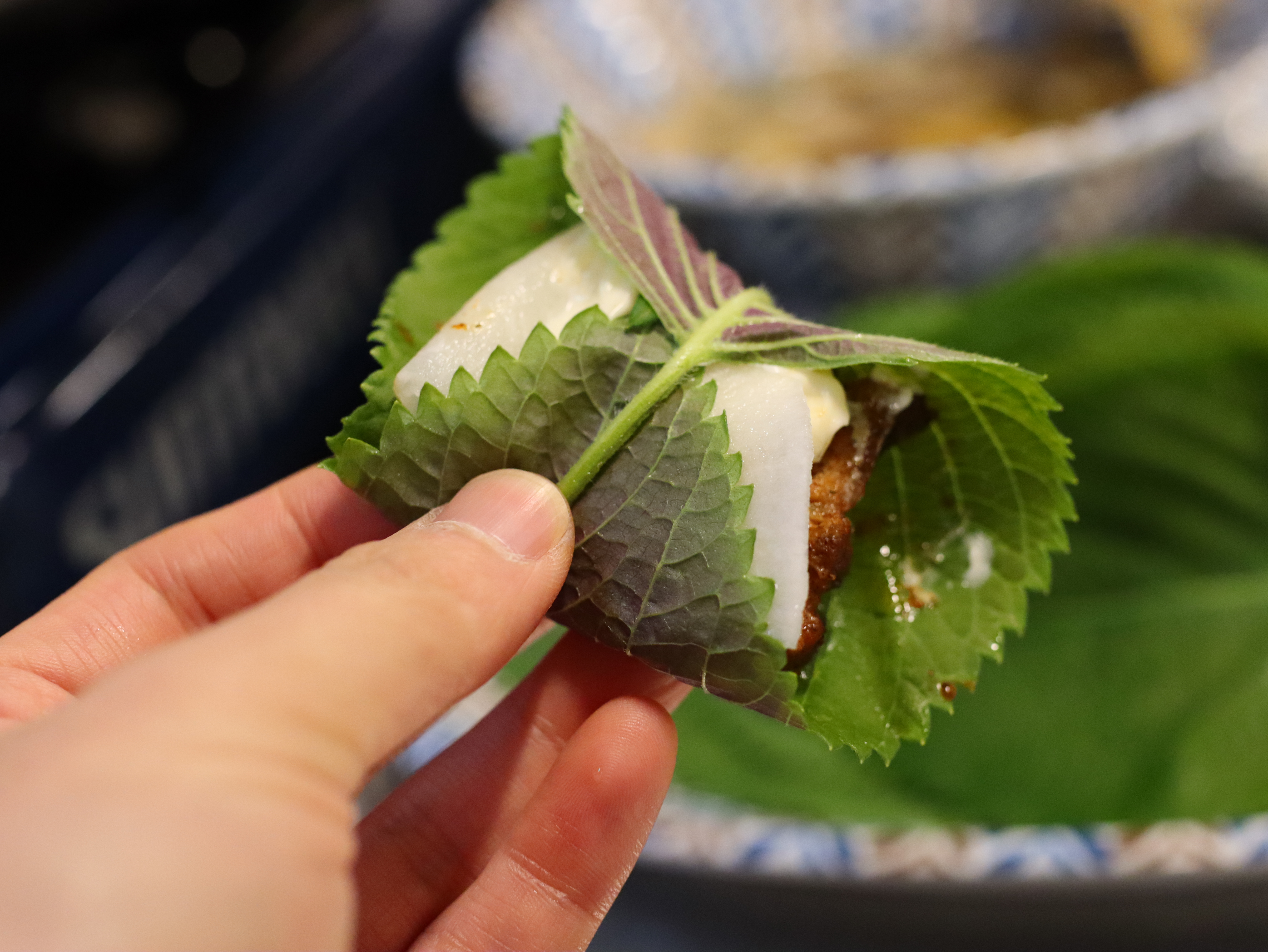 특히, 깻잎에 고기와 김치, 마늘을 올려 싸 먹으면 그야말로 환상의 조합!