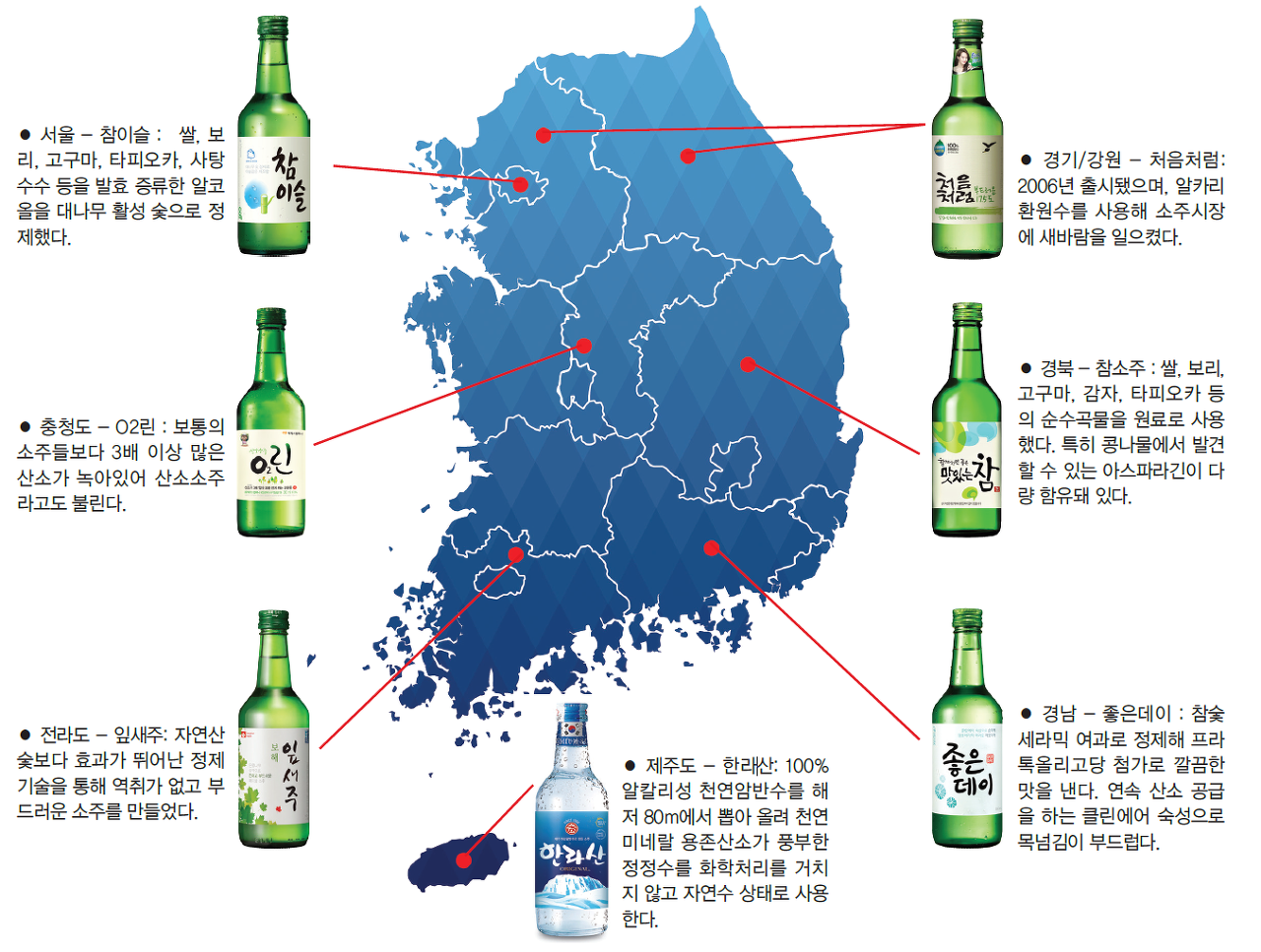 소주 1병 칼로리 - 참이슬 진로이즈백 한라산 제로슈가 다이어트