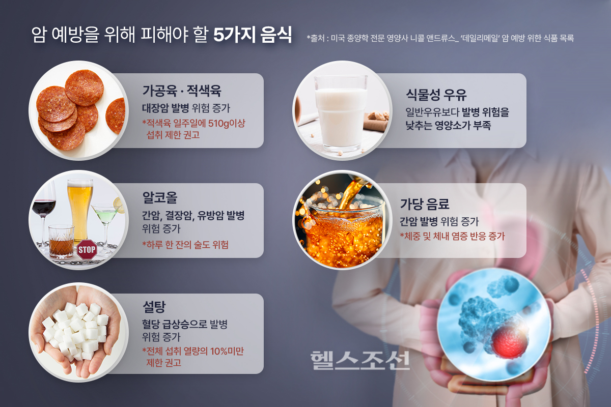 | 가공육 섭취 시 추가 위험 | 위암, 대장암, 고혈압 등 | - 햄, 소시지, 베이컨 등 가공육은 아질산염(발색제) 포함 → 니트로사민(강력한 발암물질) 생성 - 염분 함량이 높아 고혈압 및 신장질환 위험 증가 |