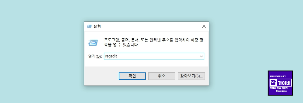 - 실행 창에 regedit를 입력하고 확인을 클릭하여 레지스트리 편집기를 실행합니다.