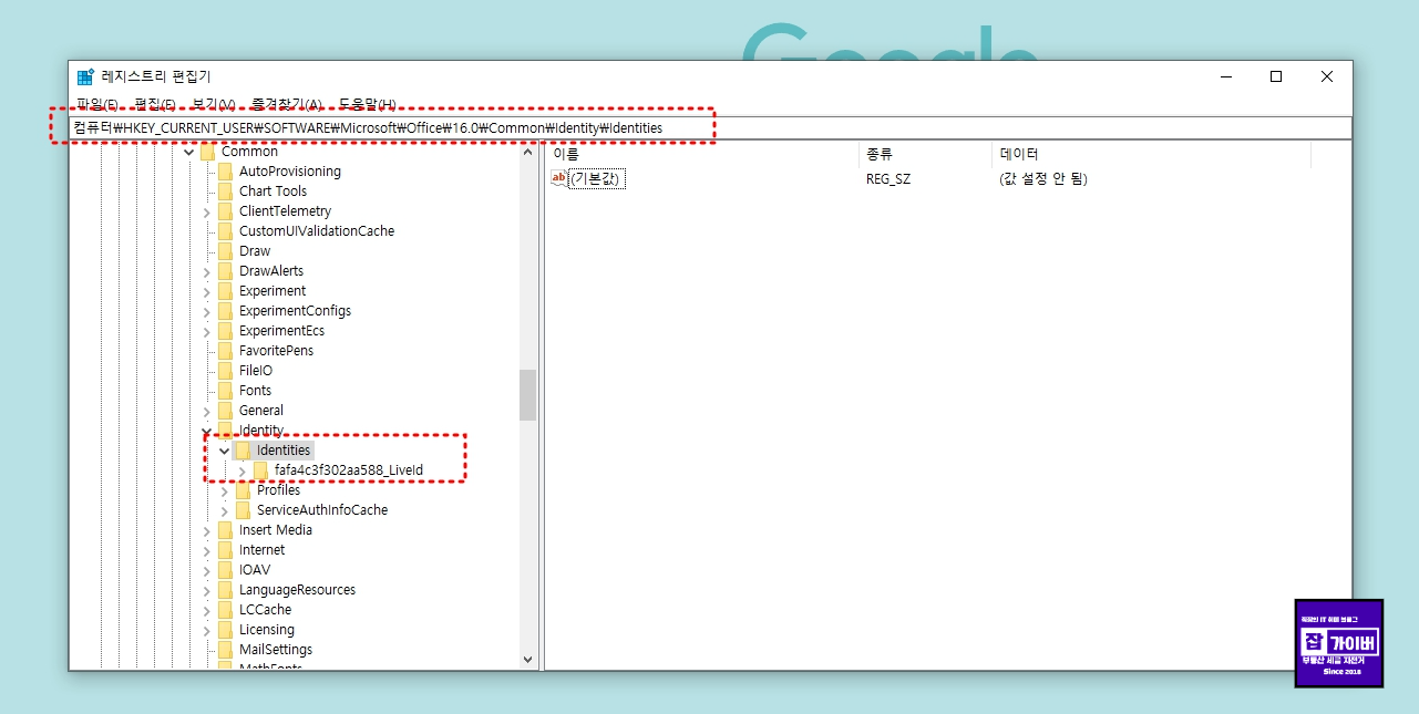 현재 계정 정보가 캐시된 폴더를 찾아 모두 삭제합니다. 이는 계정과 연관된 모든 레지스트리 키를 포함합니다.