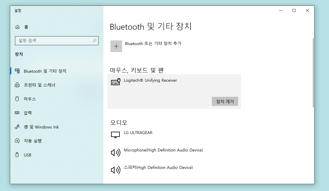 - 여러 개 표시된다면 현재 사용 중인 마우스 외의 장치는 삭제