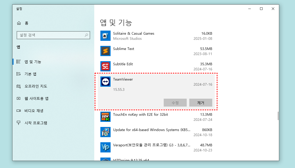 ✅ 원격 제어 프로그램 삭제 → 제어판 > 프로그램 제거에서 'TeamViewer', 'AnyDesk' 등이 설치되어 있다면 삭제 후 PC 재부팅