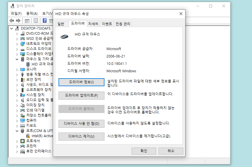 - HID 규격 마우스 드라이버 확인