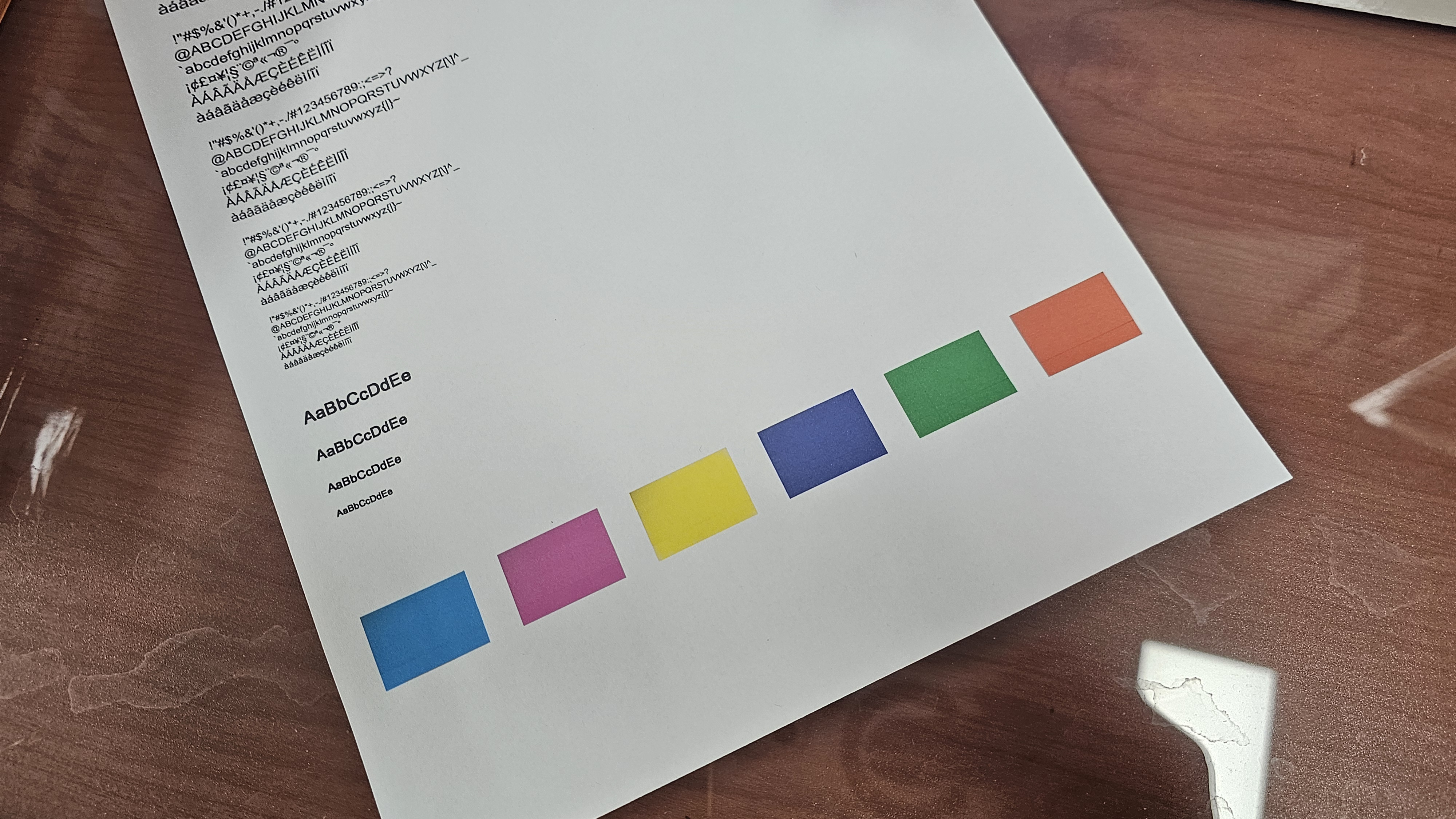 정리하고 나서 바로 테스트 페이지를 뽑았는데, 첫 장은 여전히 노란색이 죽어 있었습니다.