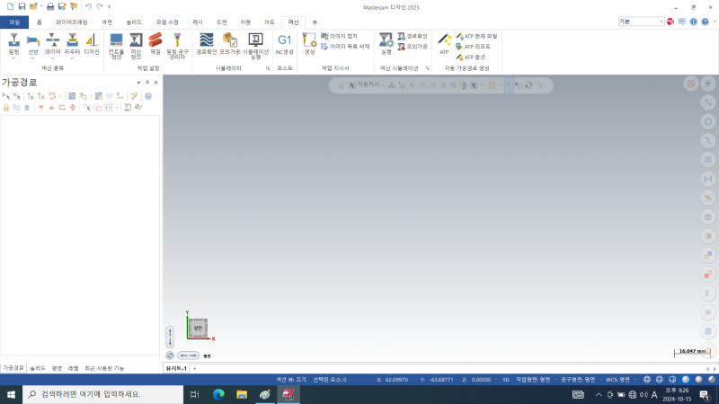 마캠 설치가 완료되고 정품 인증을 마친 후, 마스터캠 2025를 실행하면 첫 화면에서 기본적인 사용법을 안내받을 수 있습니다.